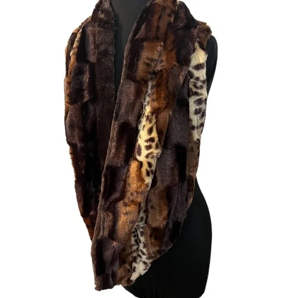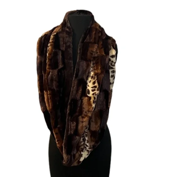 The most sexy leopard pattern featuring the faux fur cozy design, wrap yourself easily in any outfit with this scarf.Material: 100% PolyesterReversible Design. Very Soft. Measures 30" Length by 15" Wide.Wrap Around Circle of Different Faux Animal Fur. Light Weight.Brown, Copper, Bronze Colored Faux FurPet And Smoke Free HomeBFISH