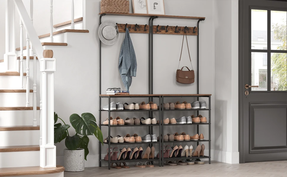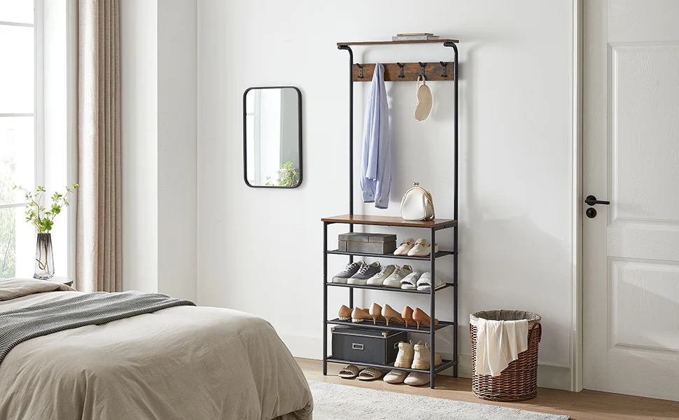 • [All in one place]5 shelves at the bottom for bags and shoes, 5 double hooks for hanging coats, the bottom for decoration and more-how to create a tidy home!